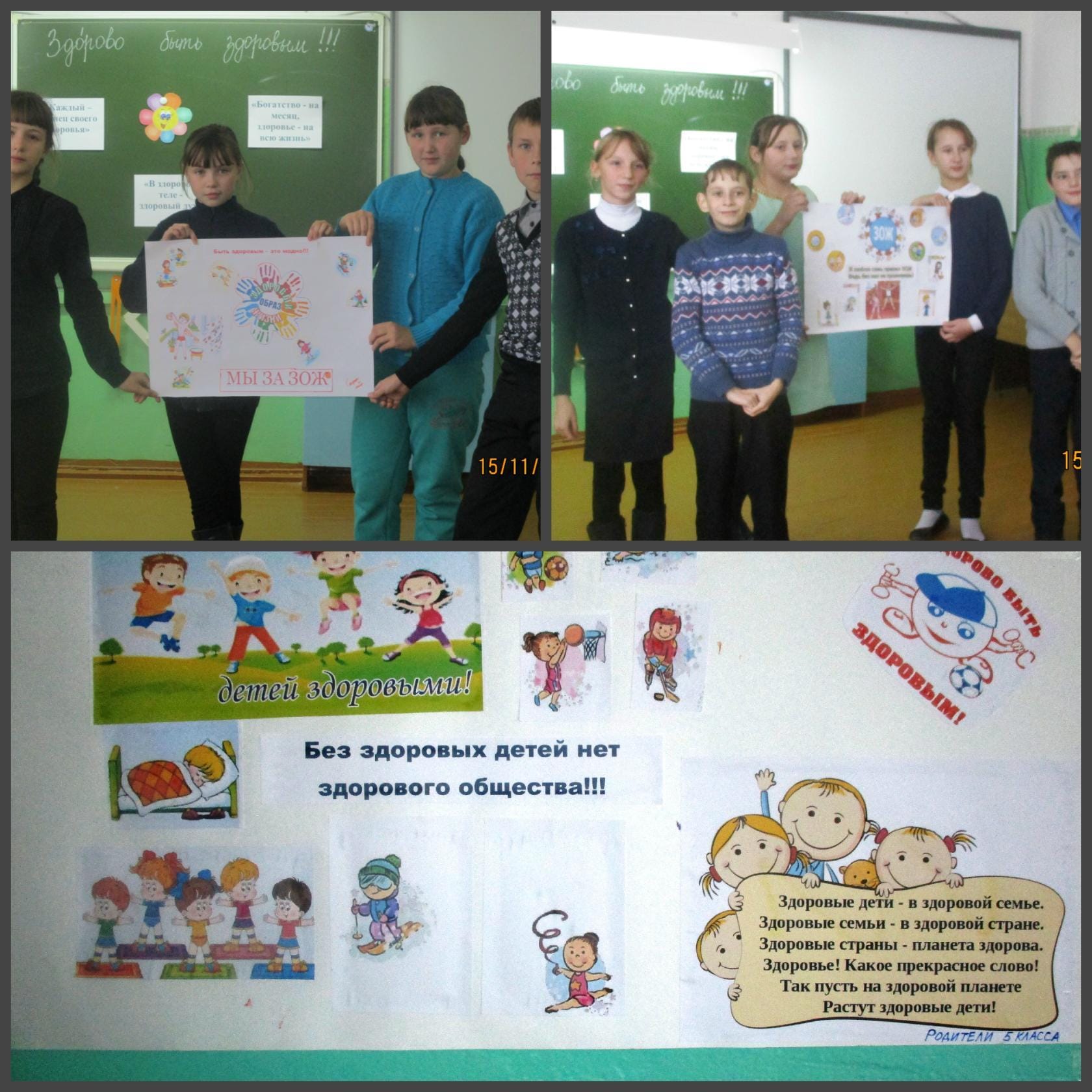 П л а к а т ы с н а д п и с я м и «В здоровом теле — здоровый дух», «Богатство — на месяц, здоровье — на всю жизнь», «Каждый – кузнец своего здоровья»